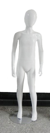 • Манекен детский реалистичный без макияжа мальчик Пластиковая имитация волос   Материал: стекловолокно (fiberglass) Подставка: нержавеющая сталь Фиксация: в стопу Рост: 128см Цвет: белый глянцевый